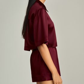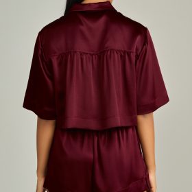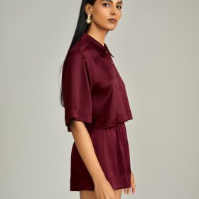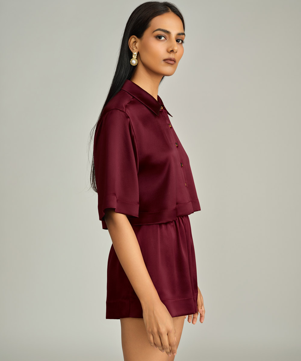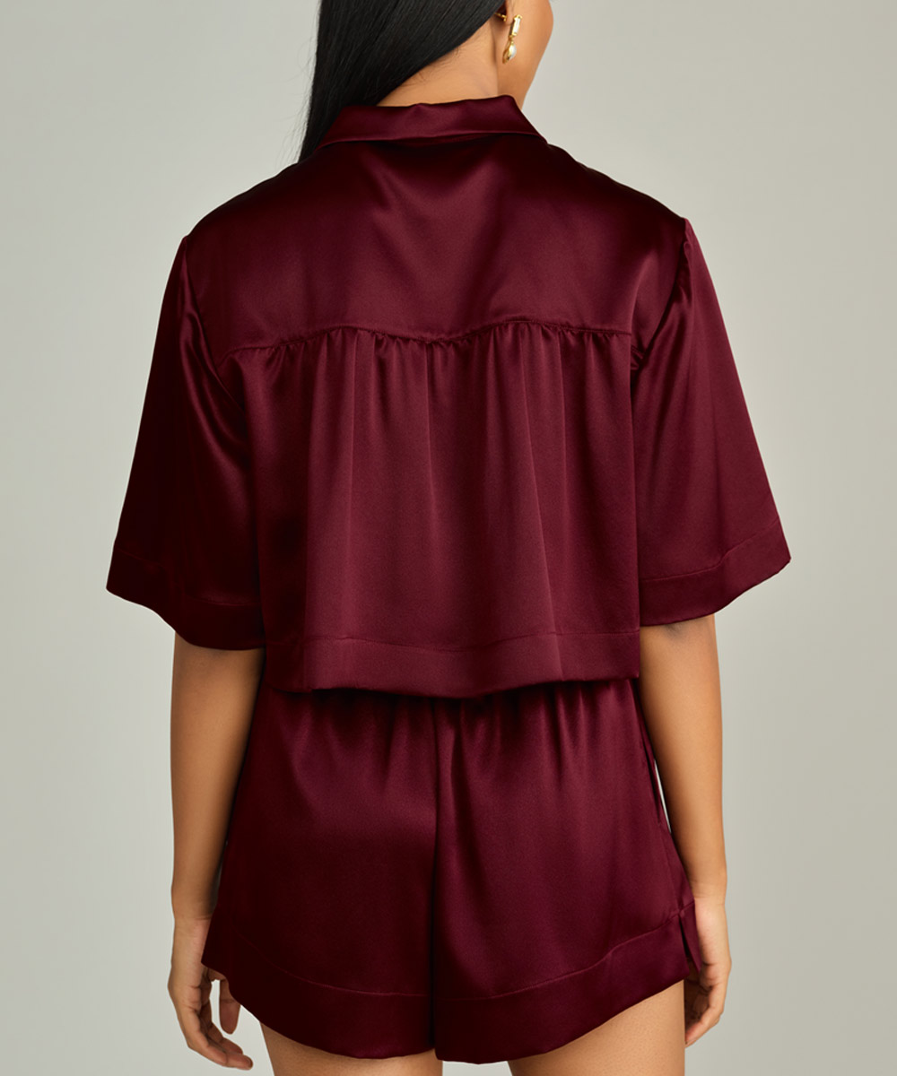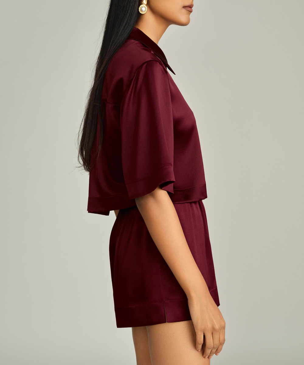 Burgundy Silk Cropped Bowling Shirt