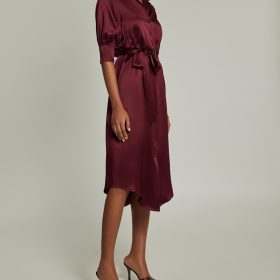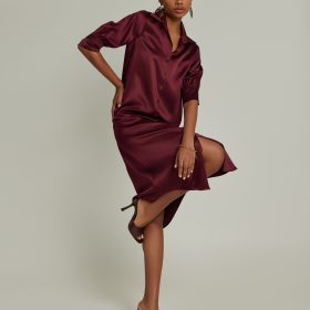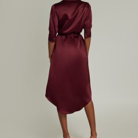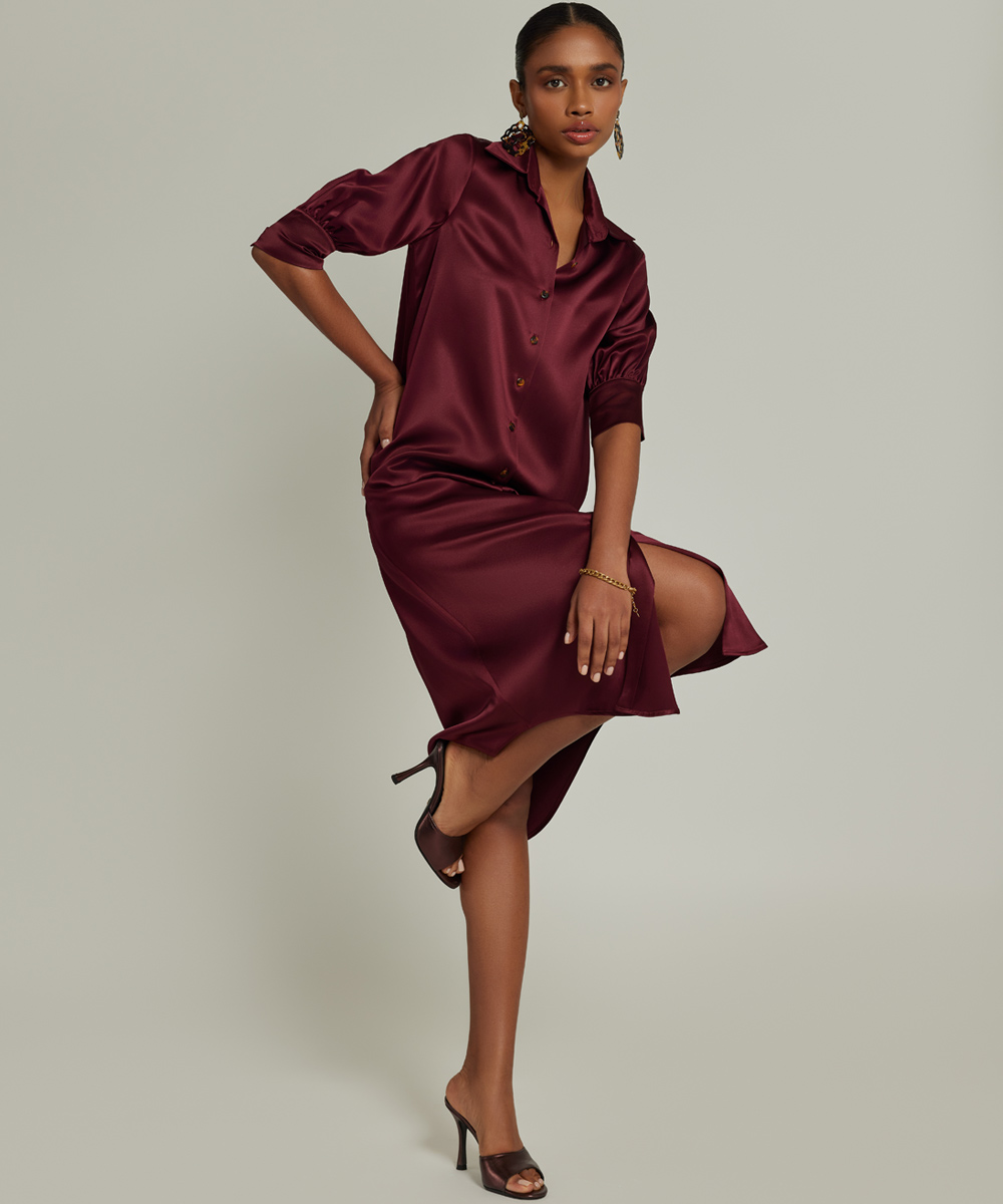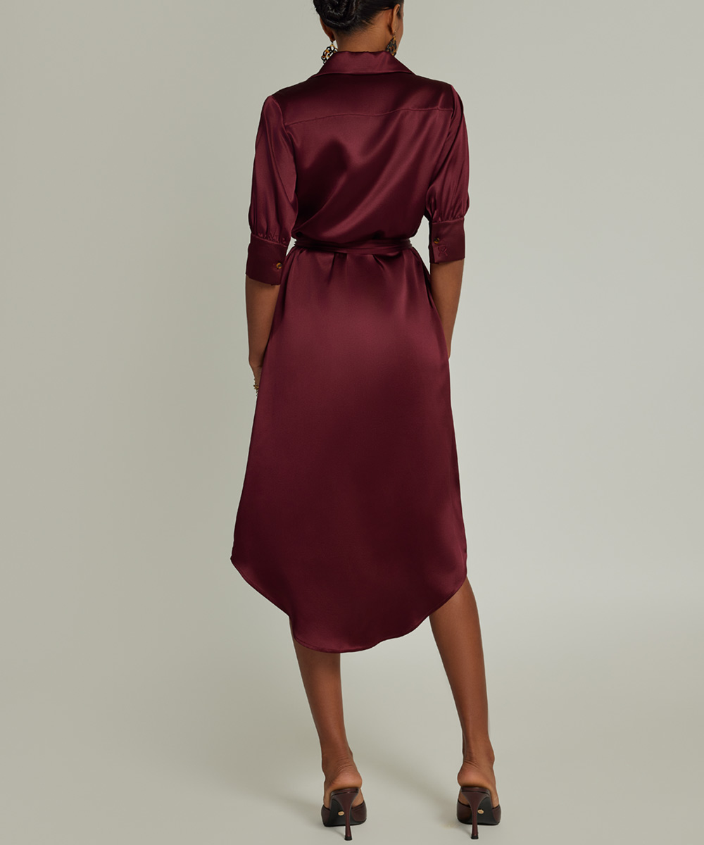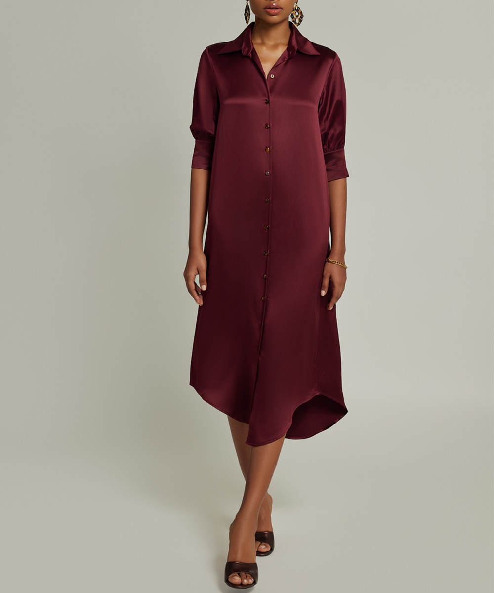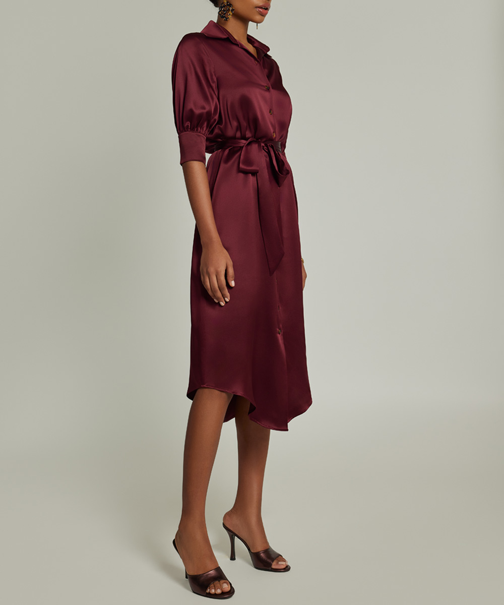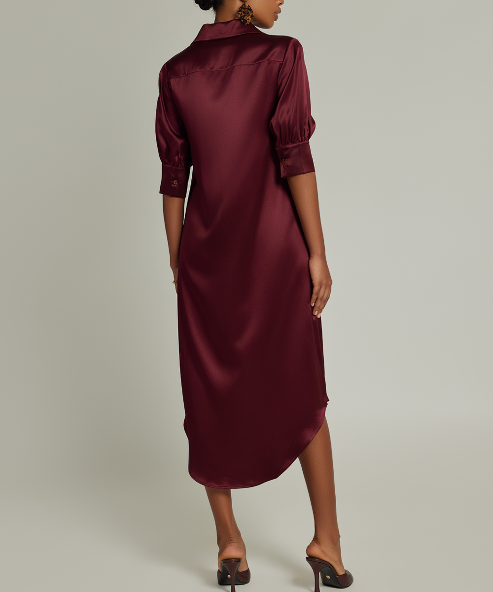 Burgundy Silk Shirt Dress