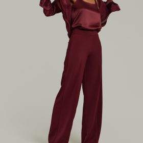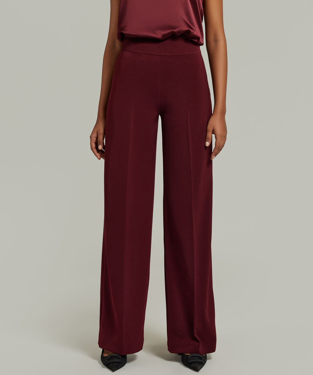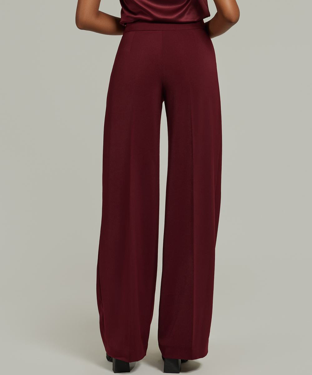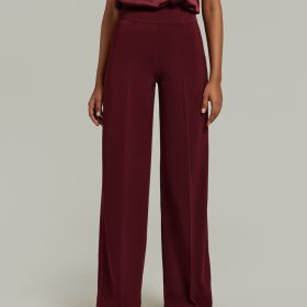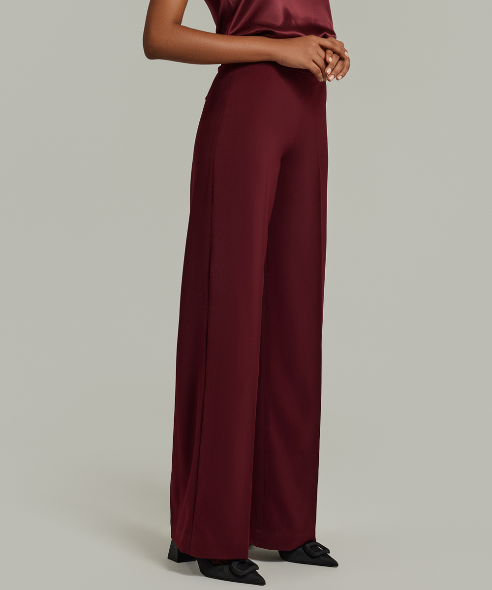 - Stretch suiting wide-leg trousers in burgundy