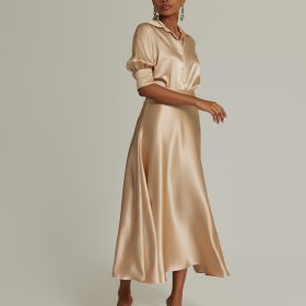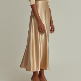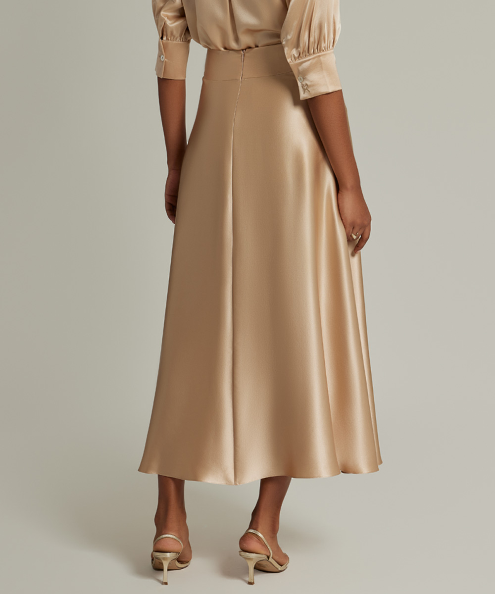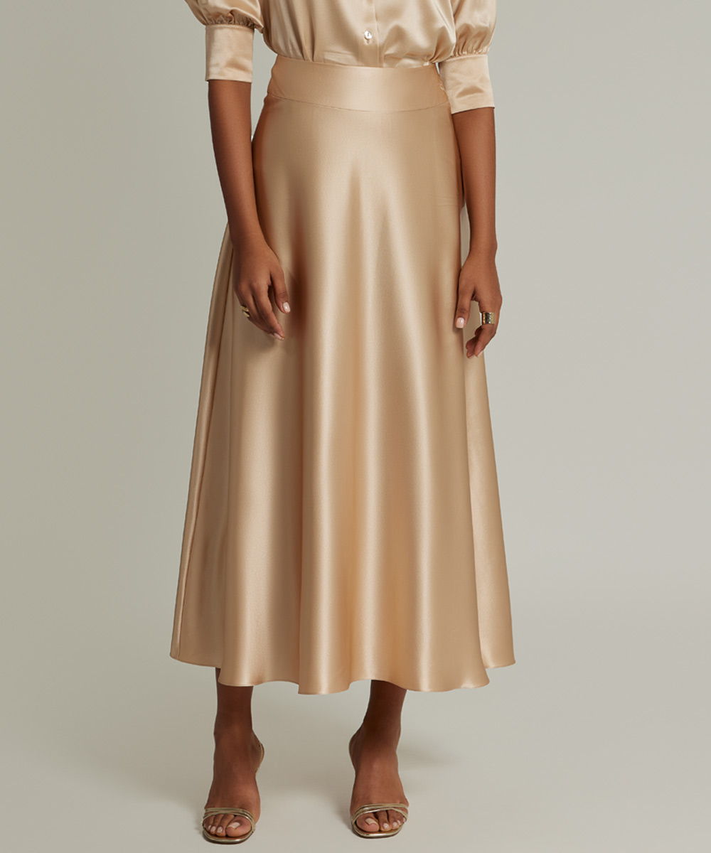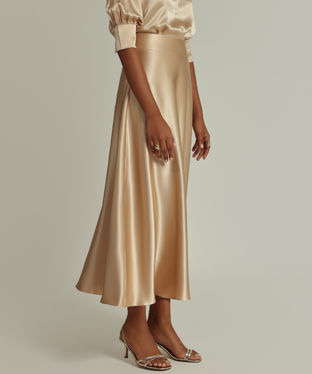 - Silk long skirt in champagne
