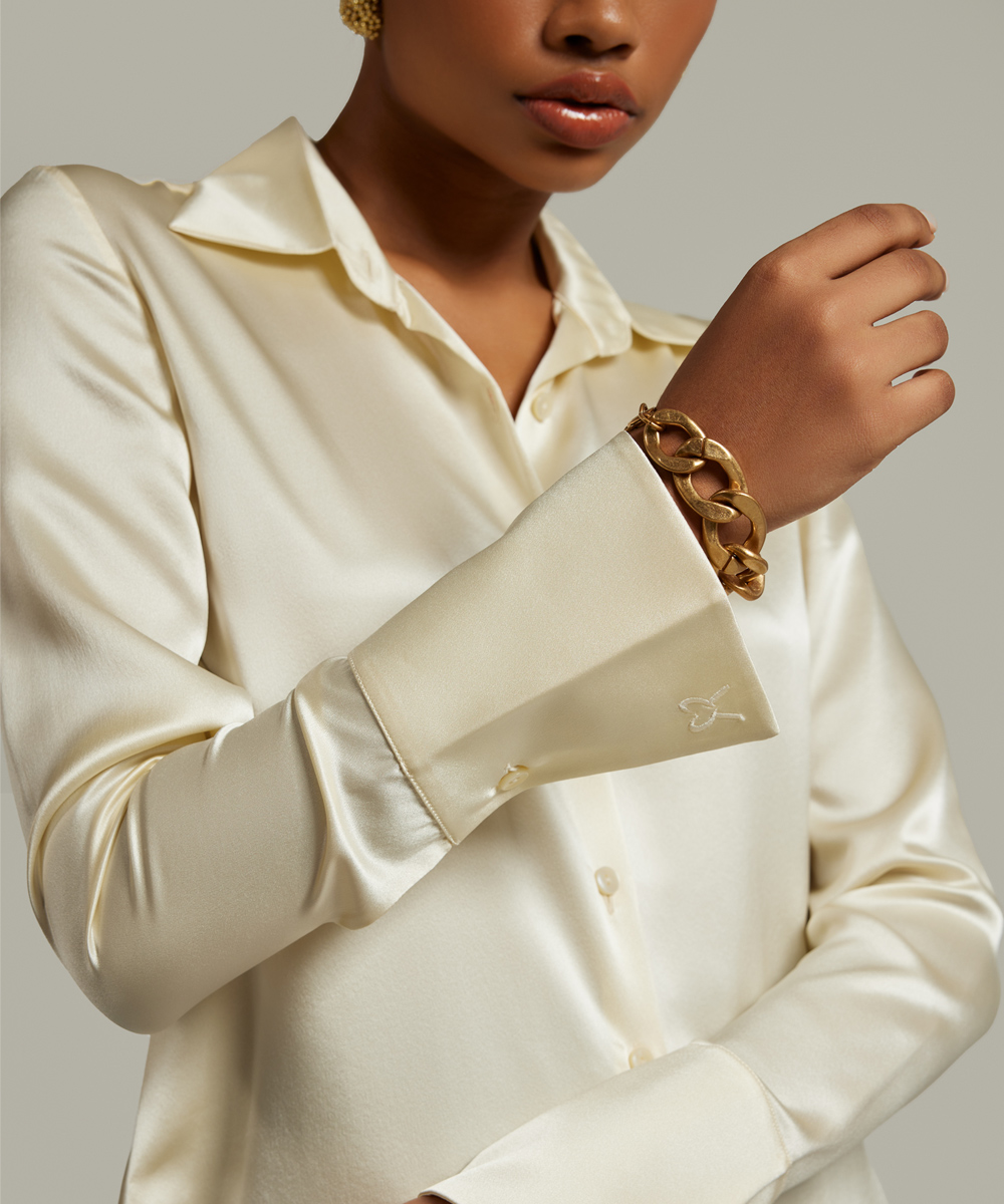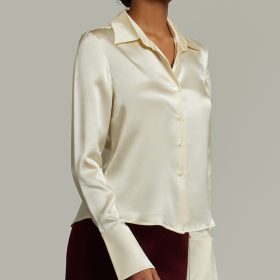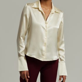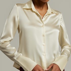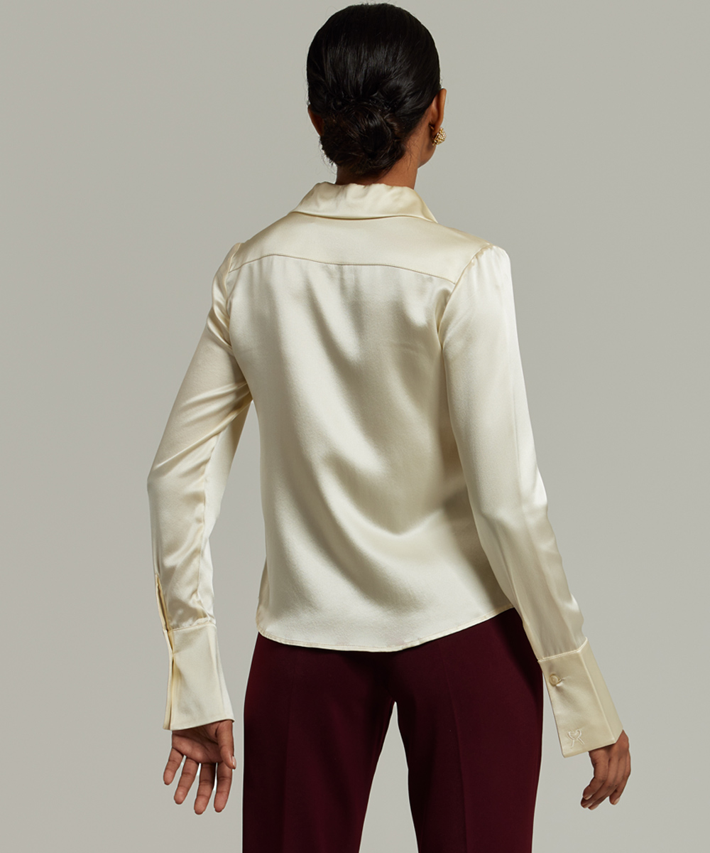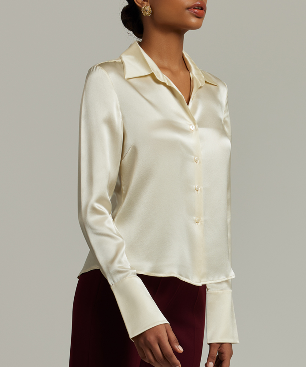 Cream Silk Long-Sleeved Shirt