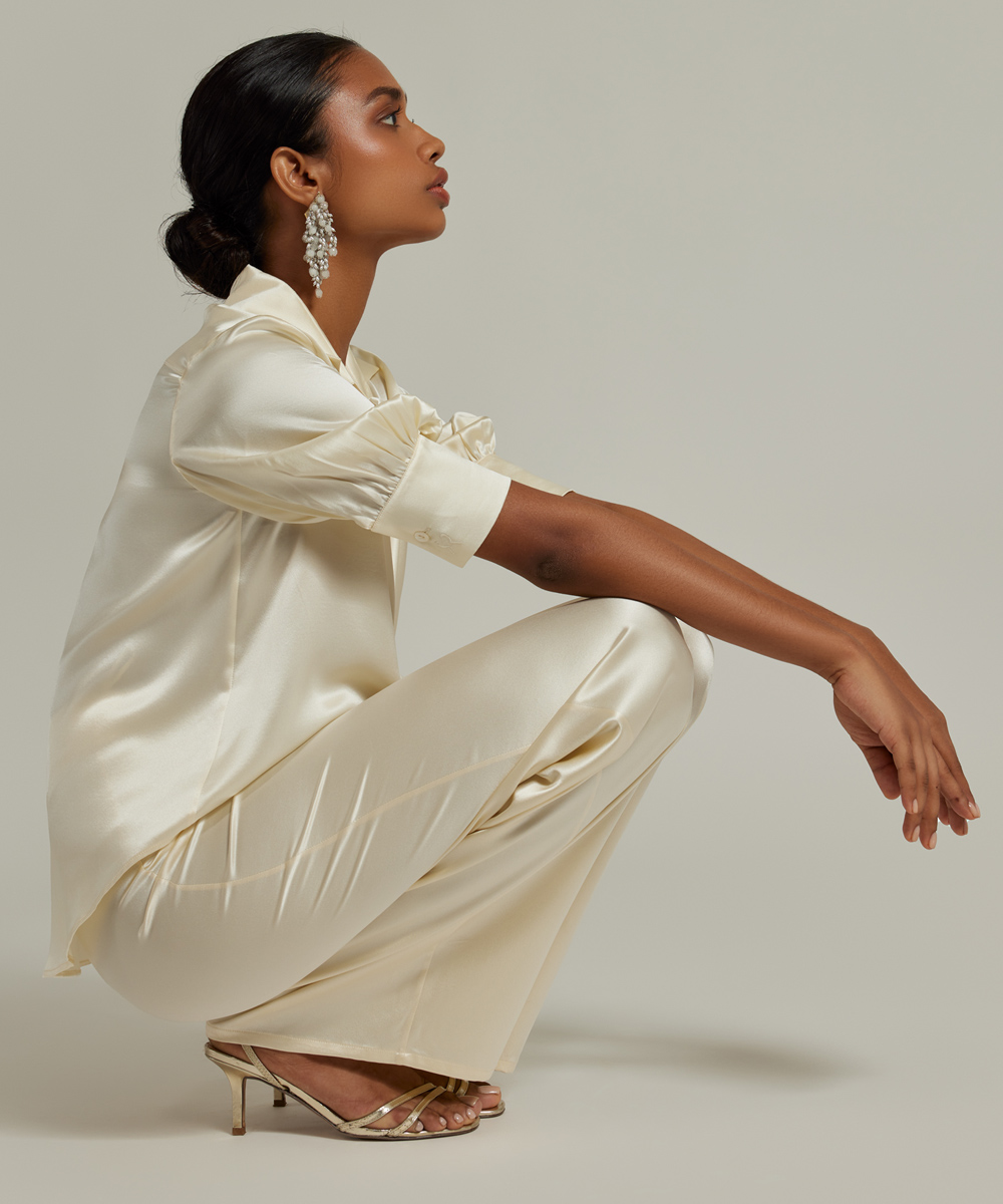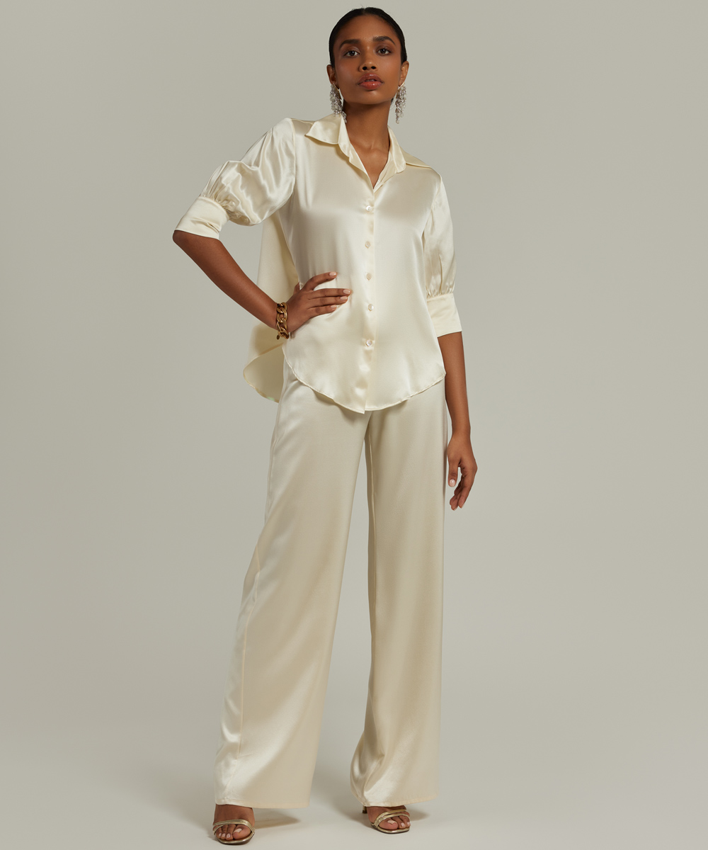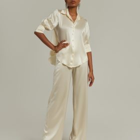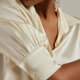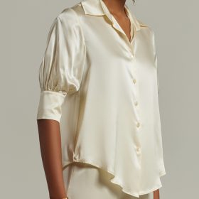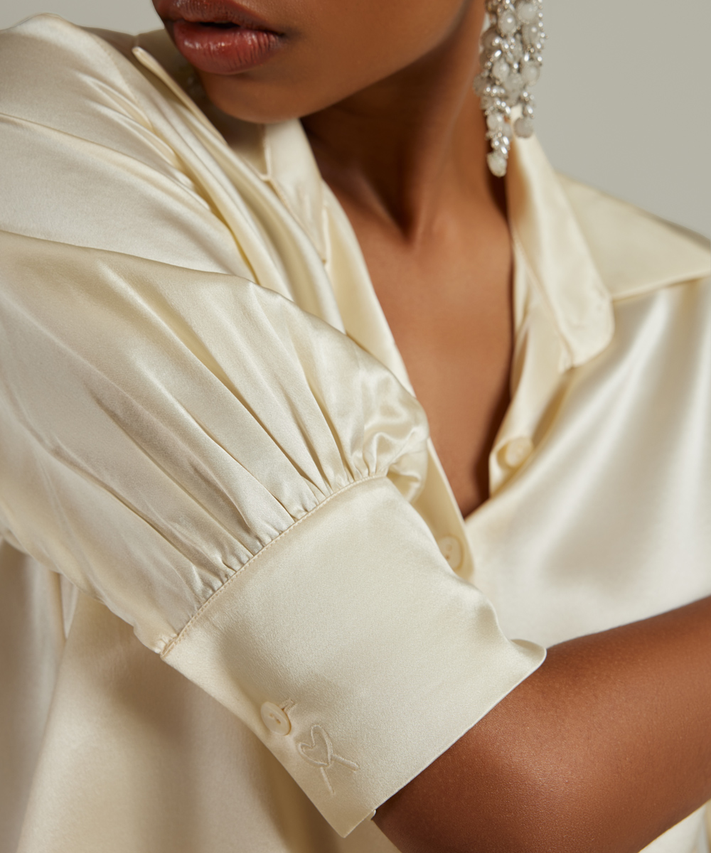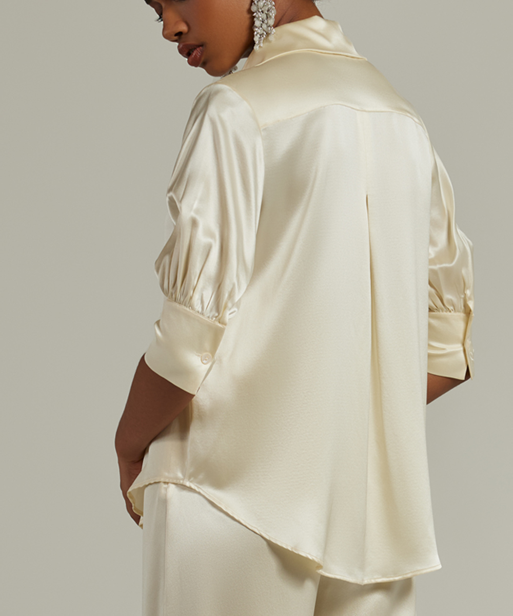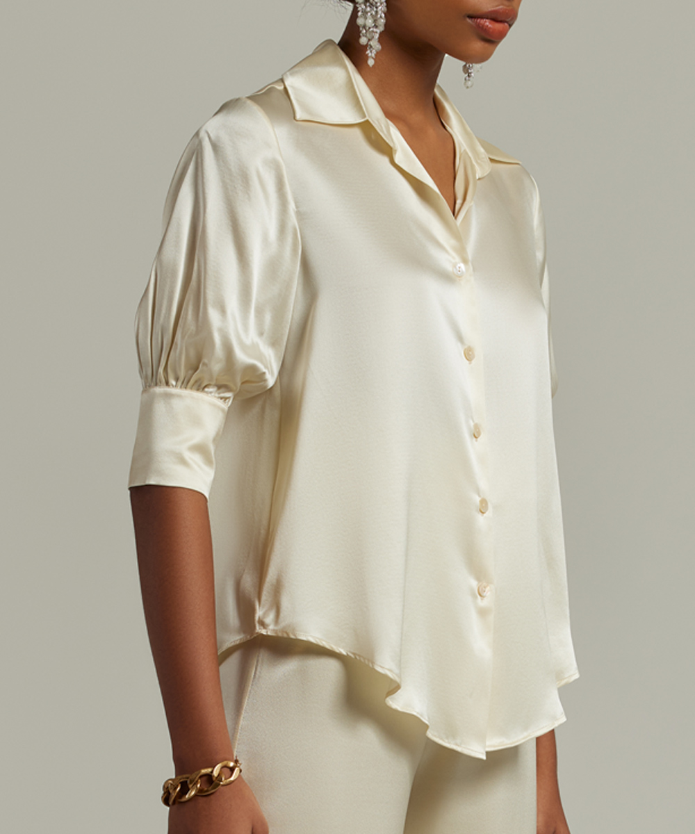 Cream Silk Short-Sleeved Shirt