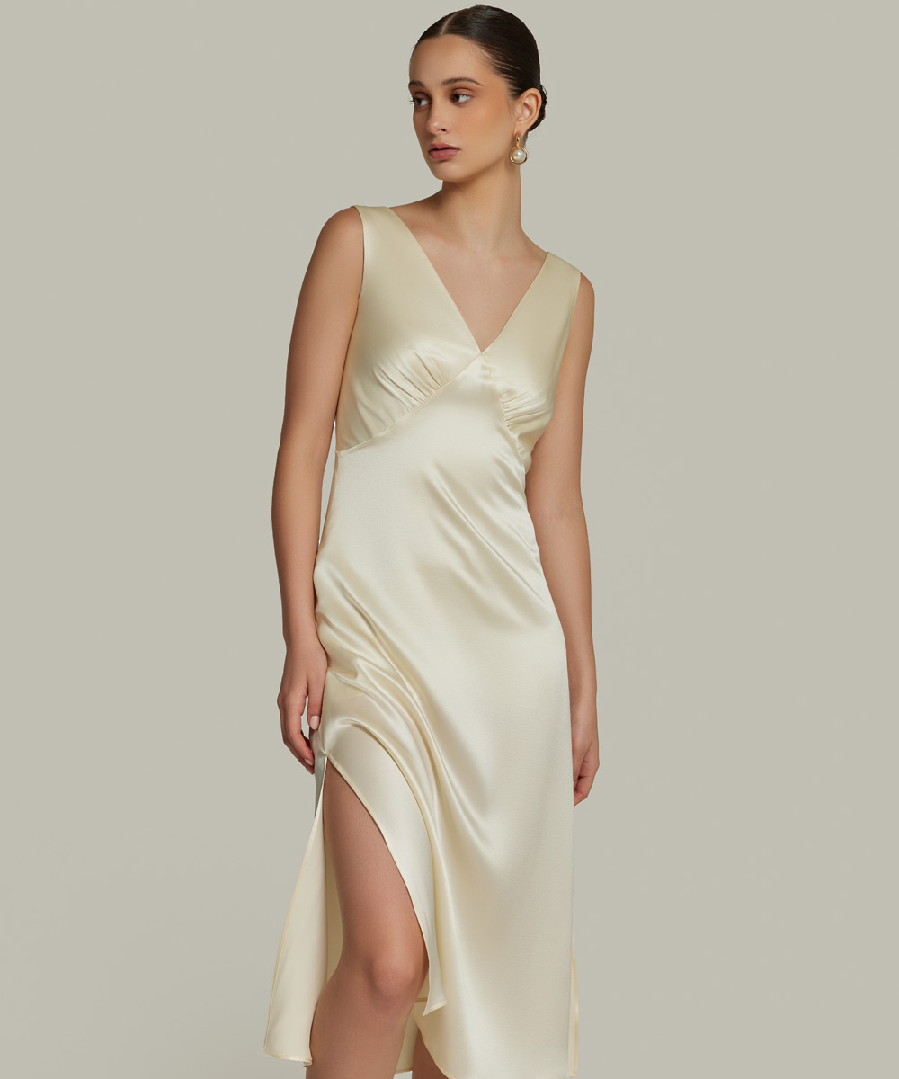 Cream Silk Slip Dress