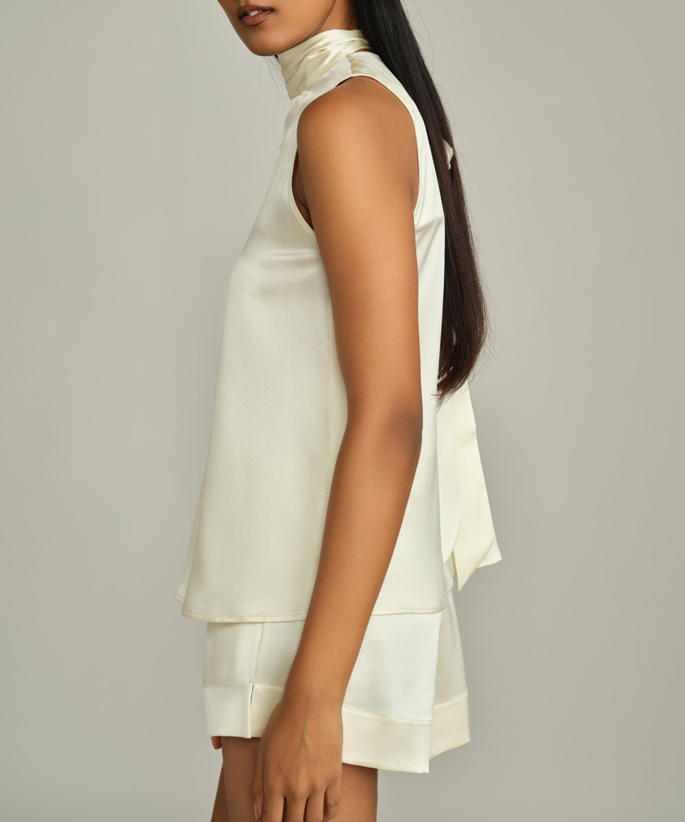 - Long neck tie which can be fastened in multiple ways, at the back or front