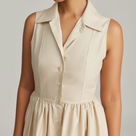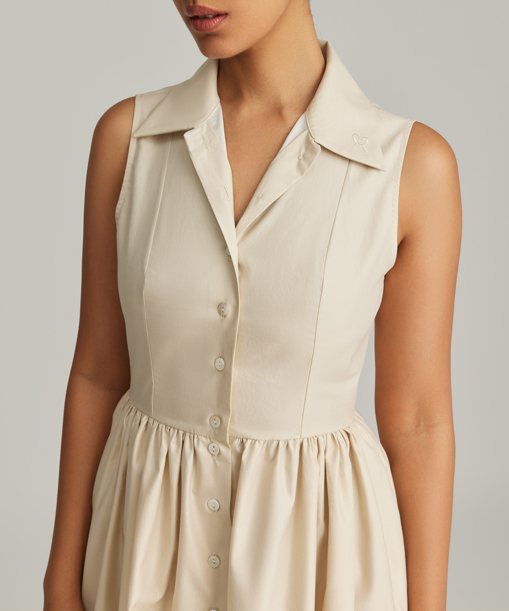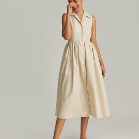 - Sleeveless long cotton dress in fawn
