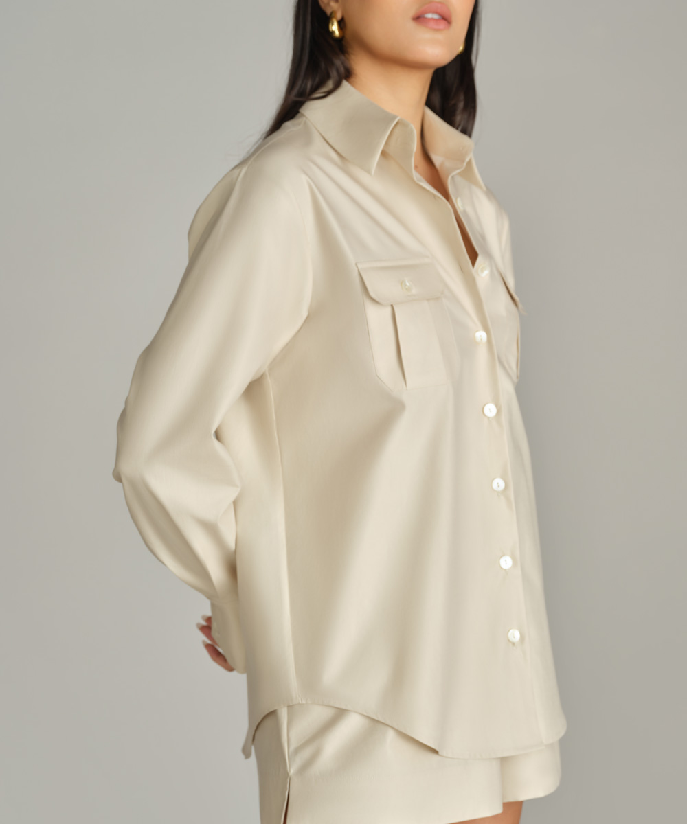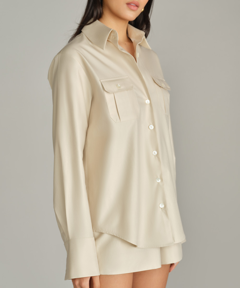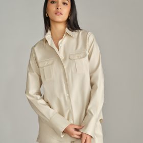- Oversized long-sleeved shirt in fawn
