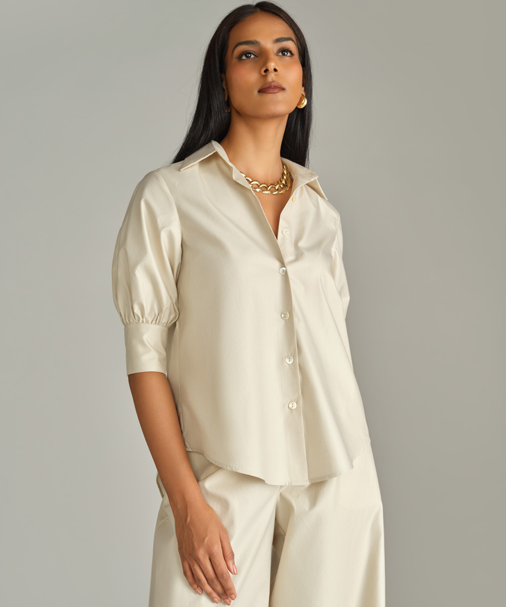 - Short-sleeved shirt in fawn