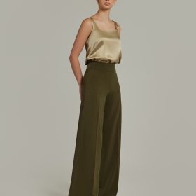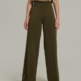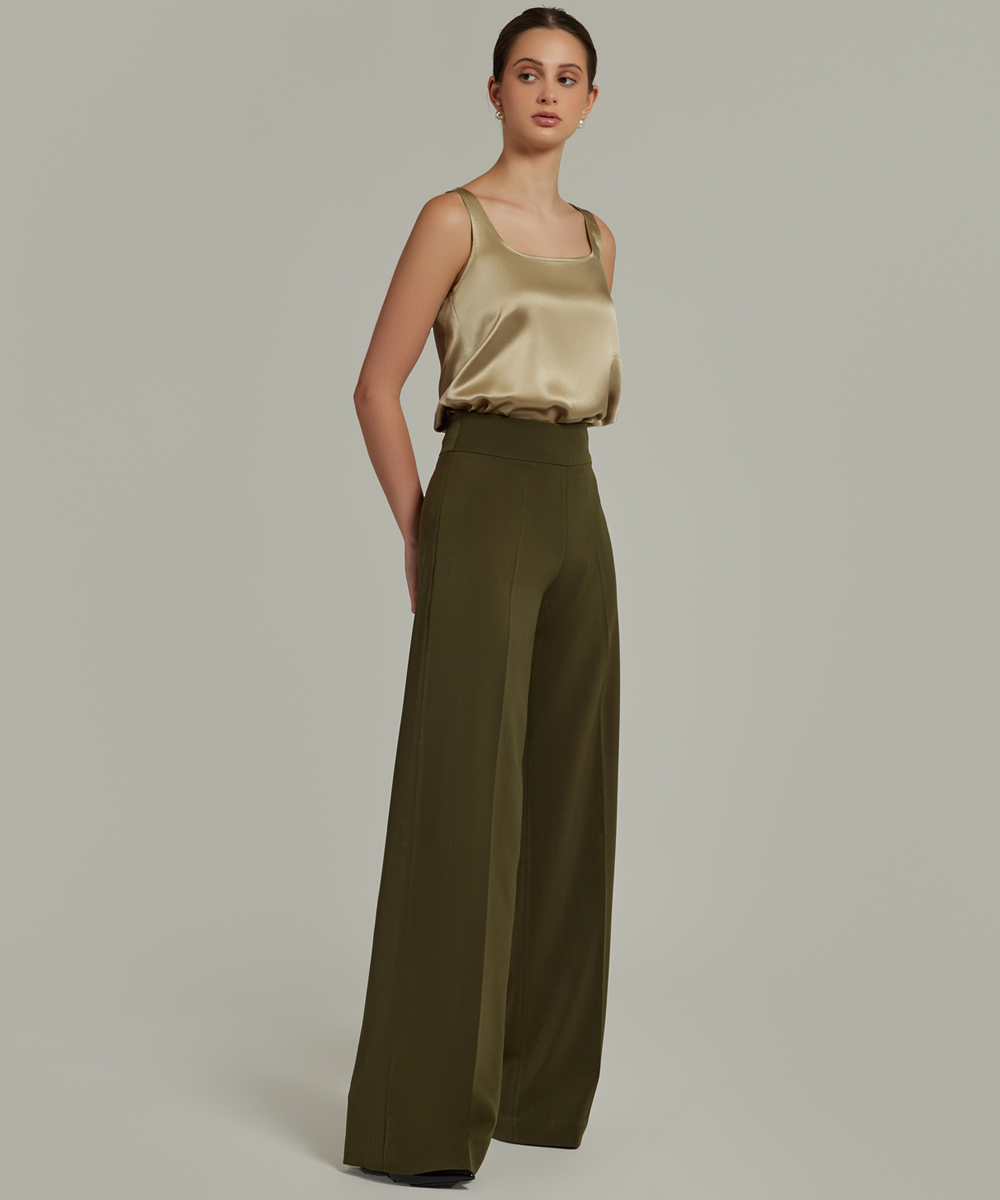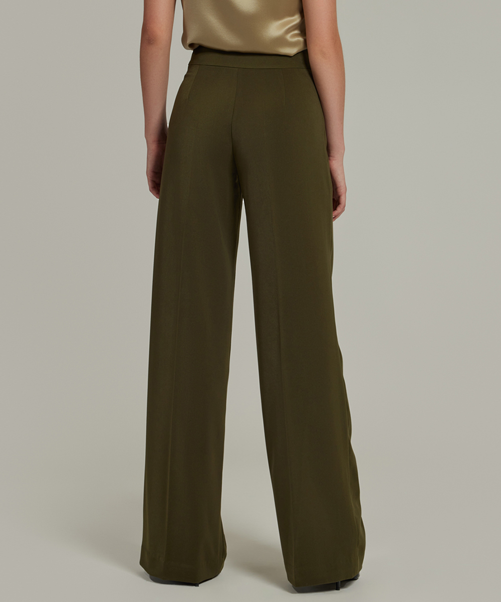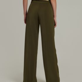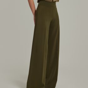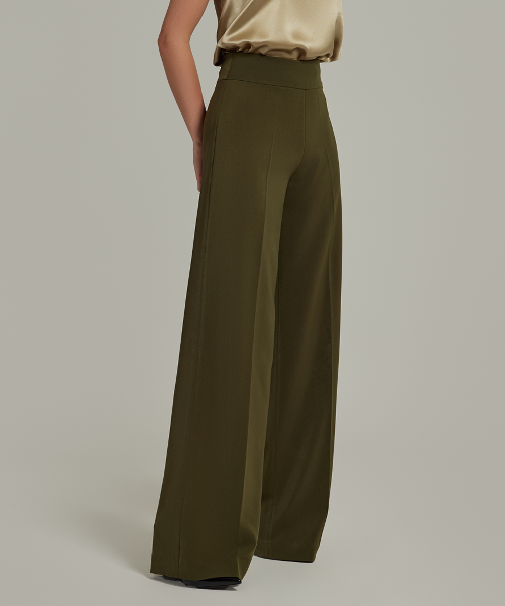 - Stretch suiting wide-leg trousers in military green