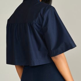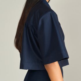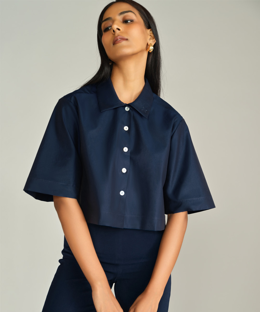 - Cropped bowling shirt in navy blue