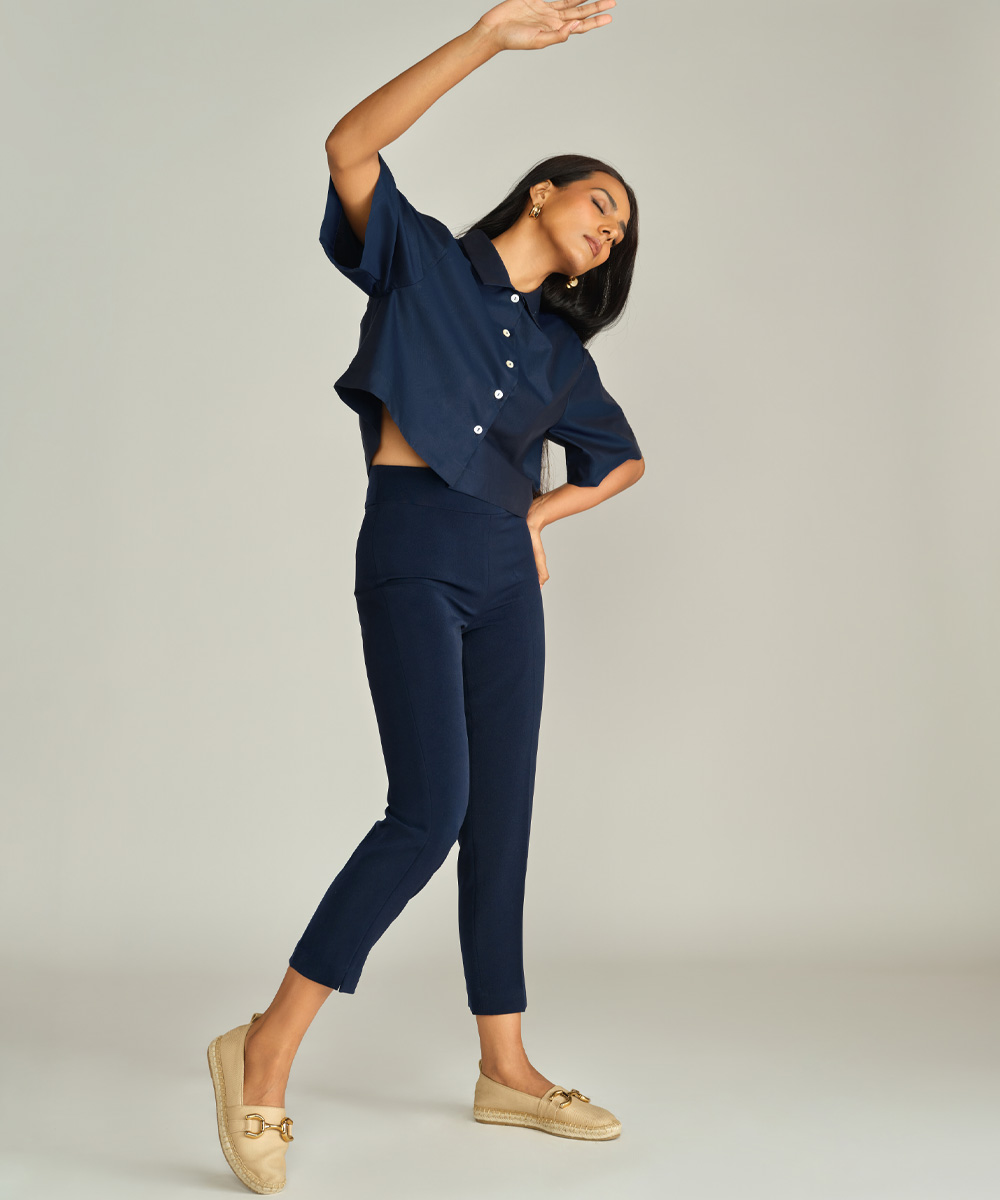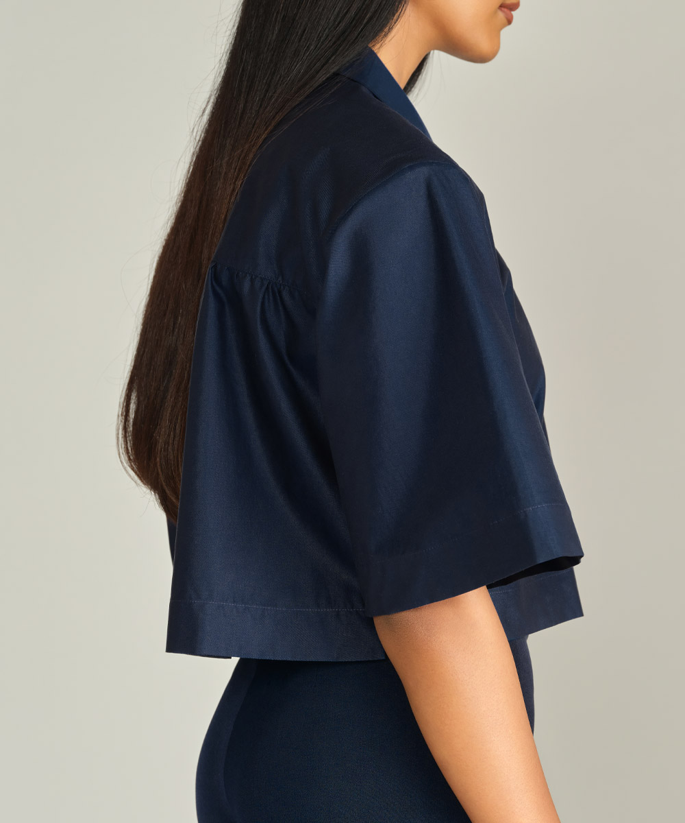 Navy Blue Egyptian Cotton Cropped Bowling Shirt