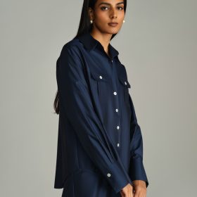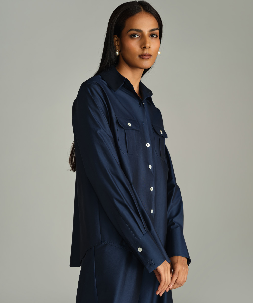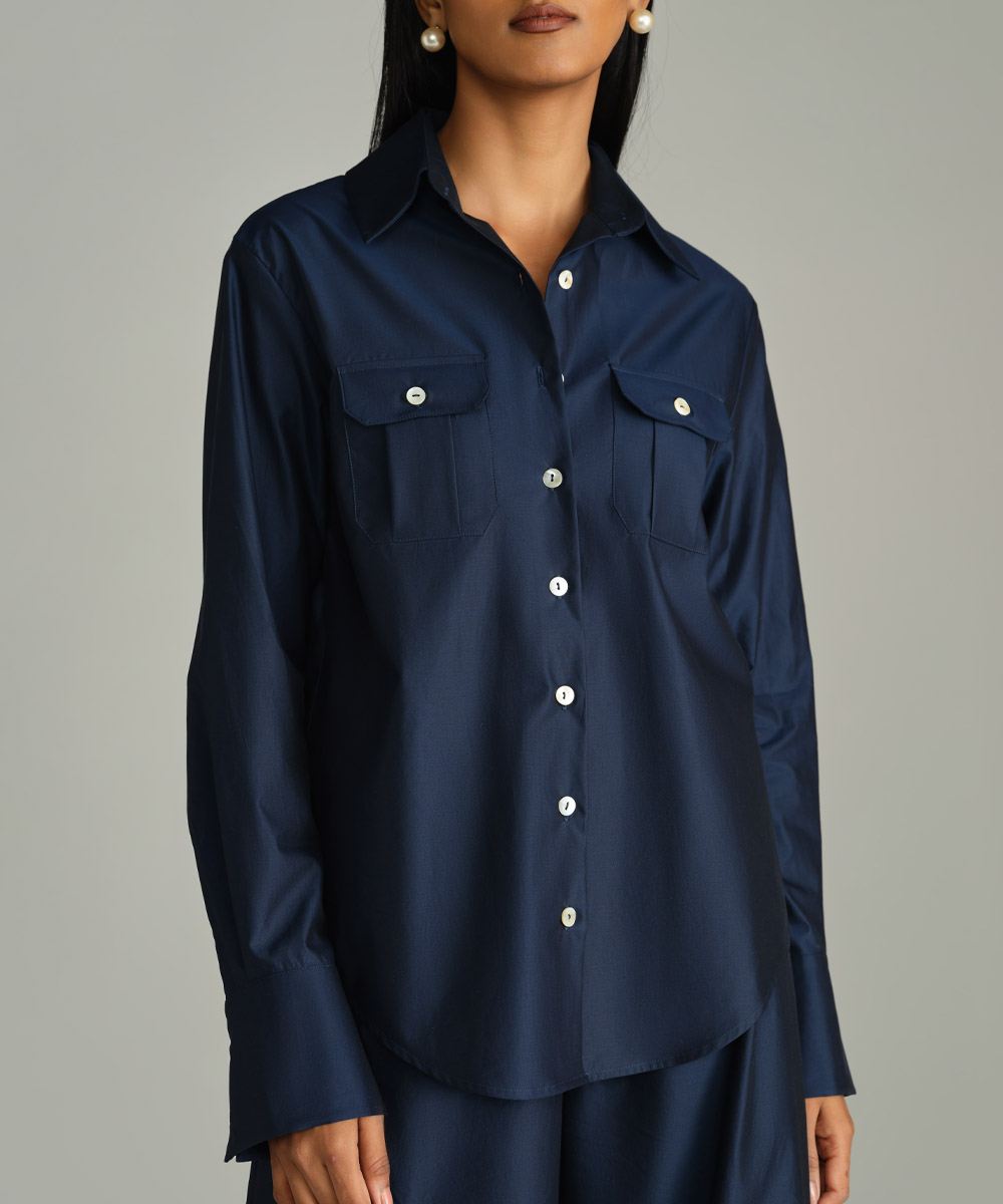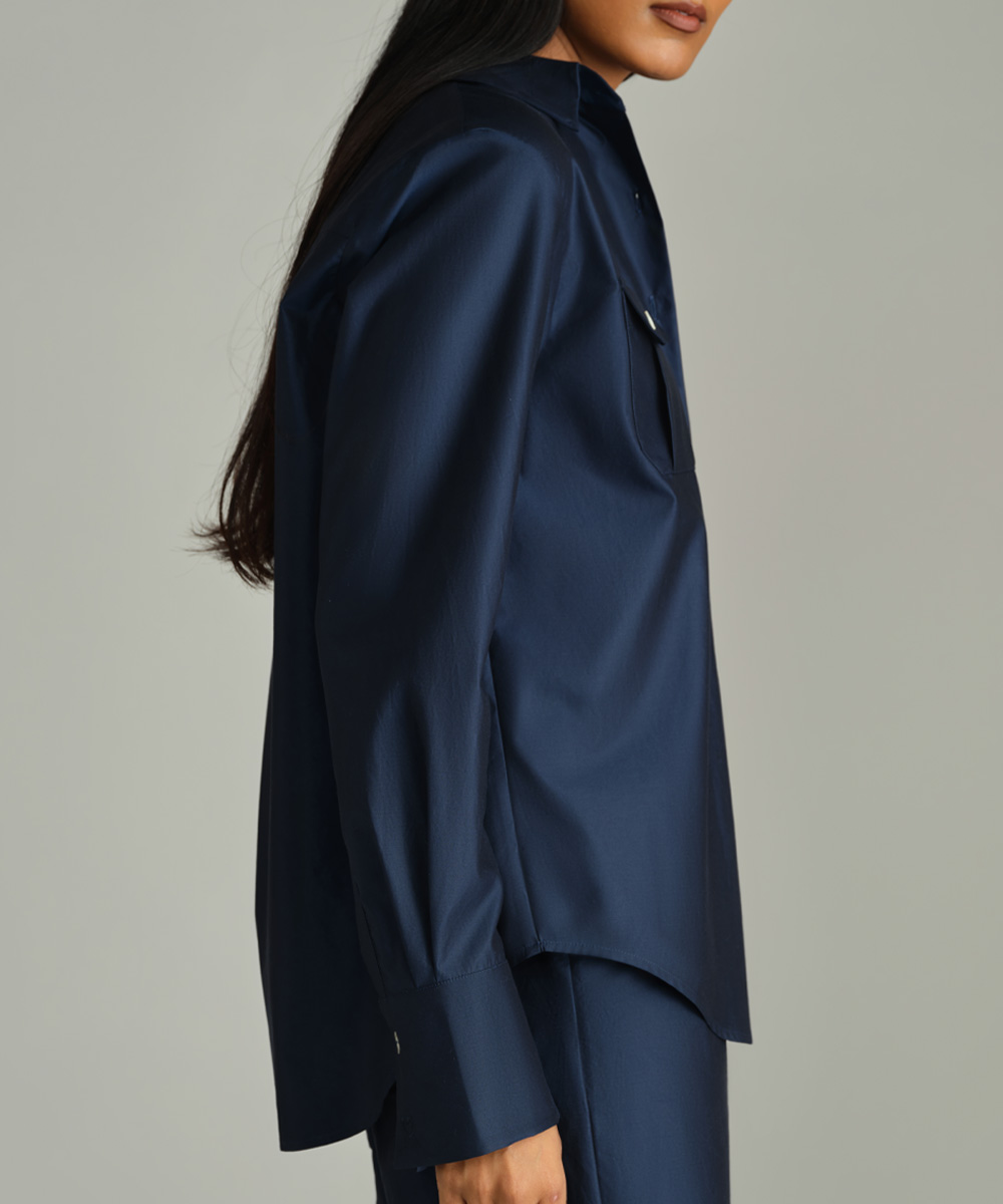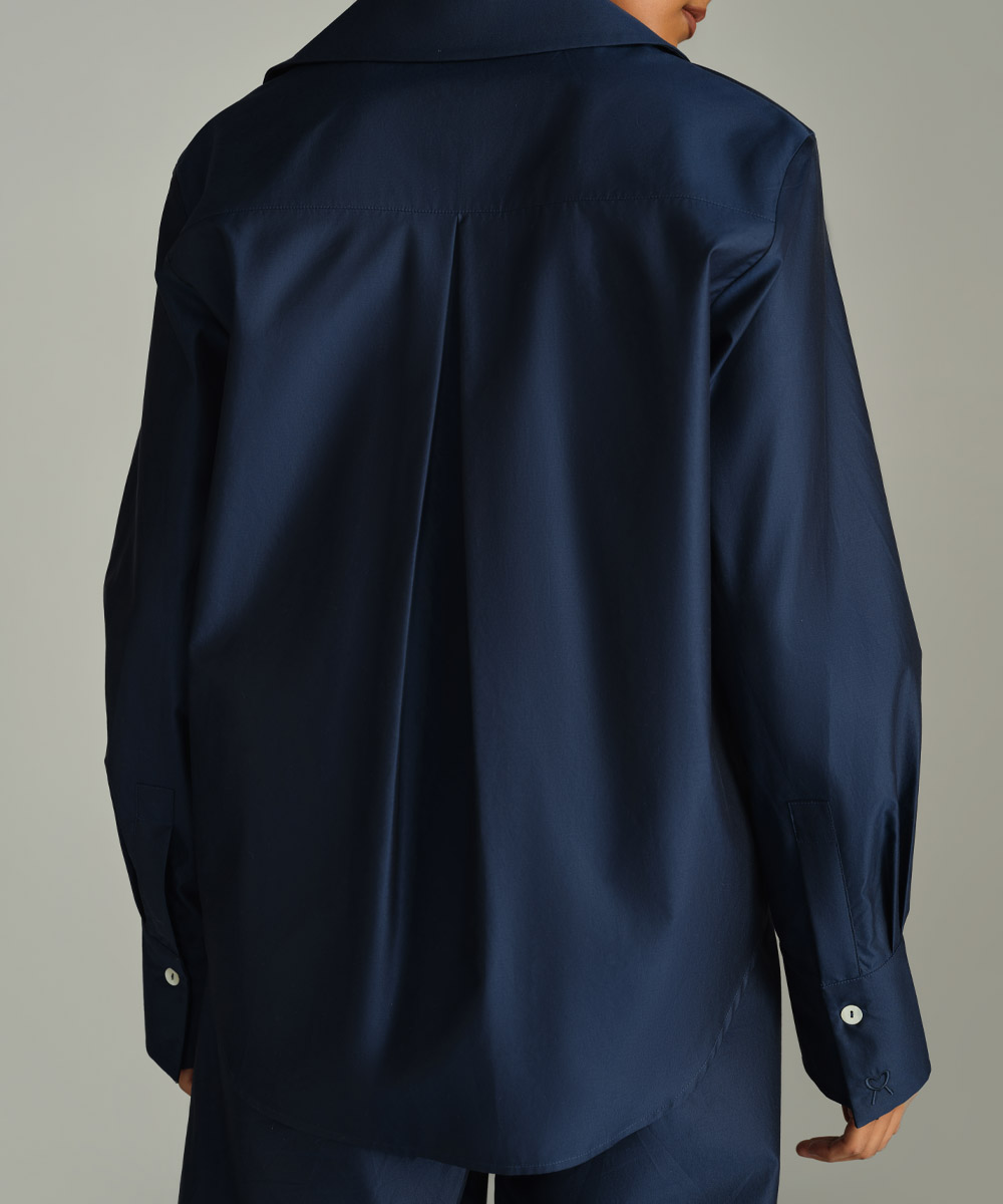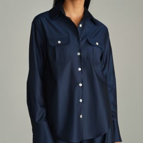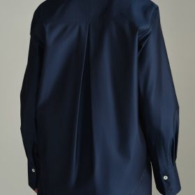 Navy Blue Egyptian Cotton Oversized Long-Sleeved Shirt