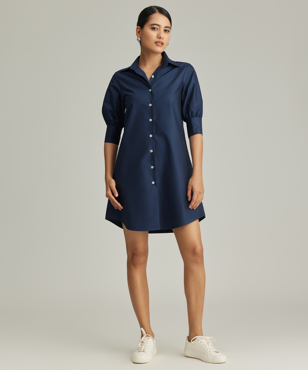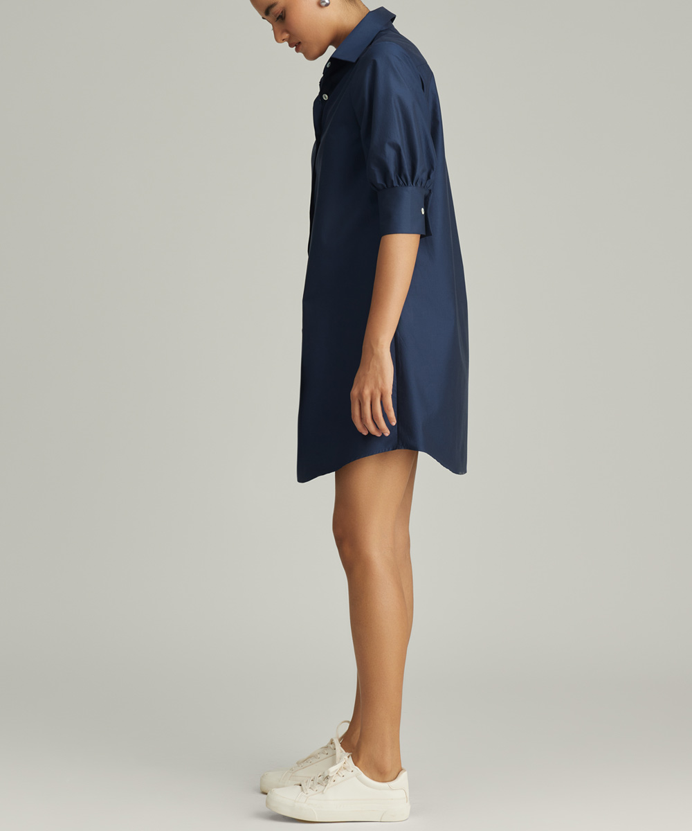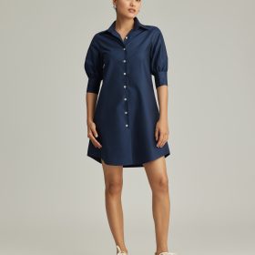 Navy Blue Egyptian Cotton Short Shirt Dress