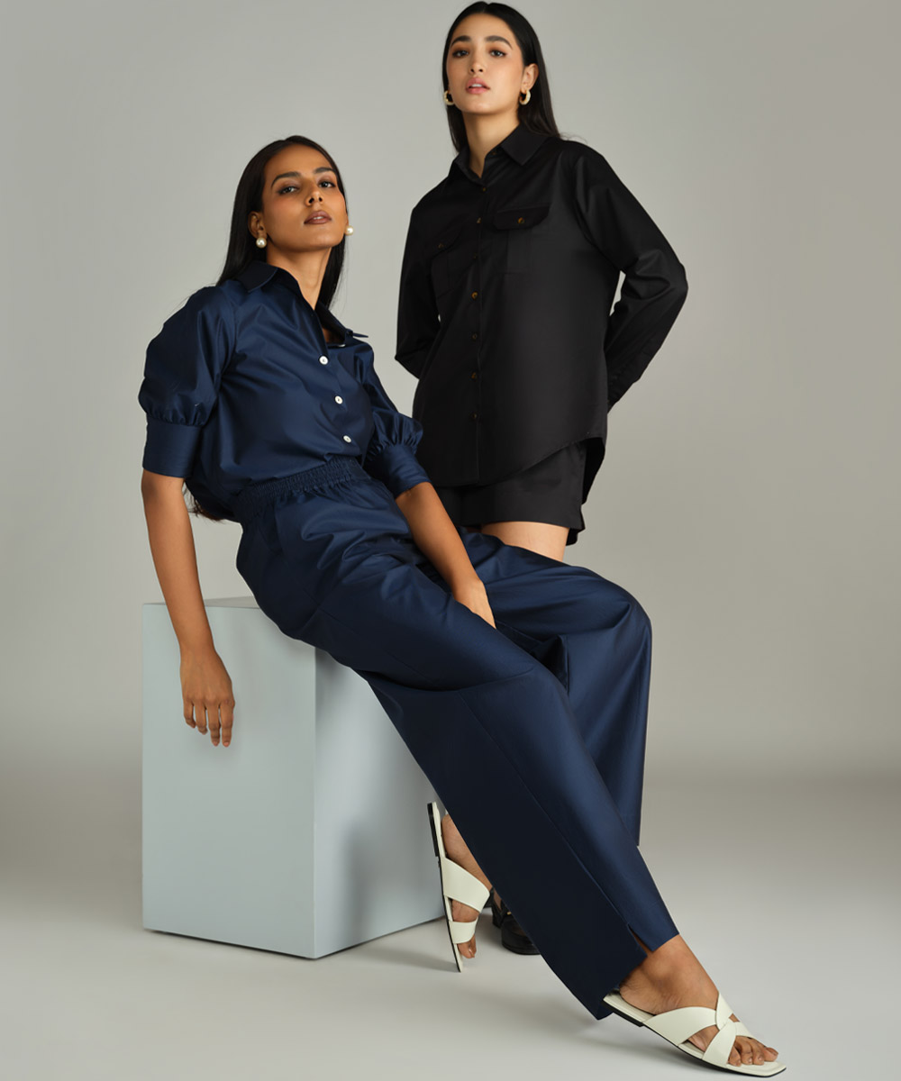 - Short-sleeved shirt in navy blue