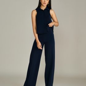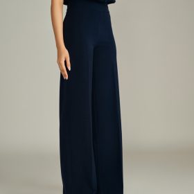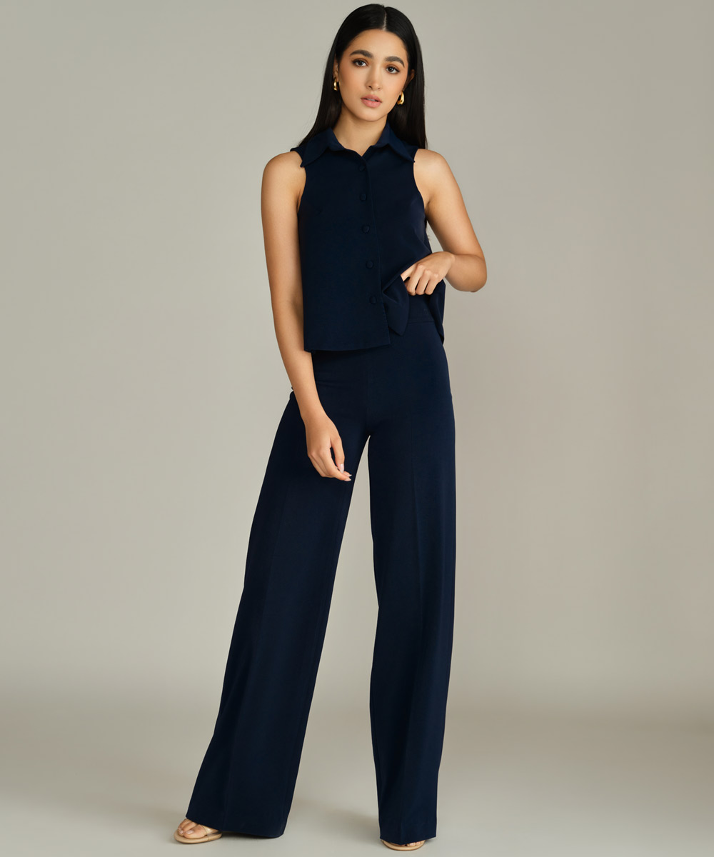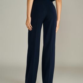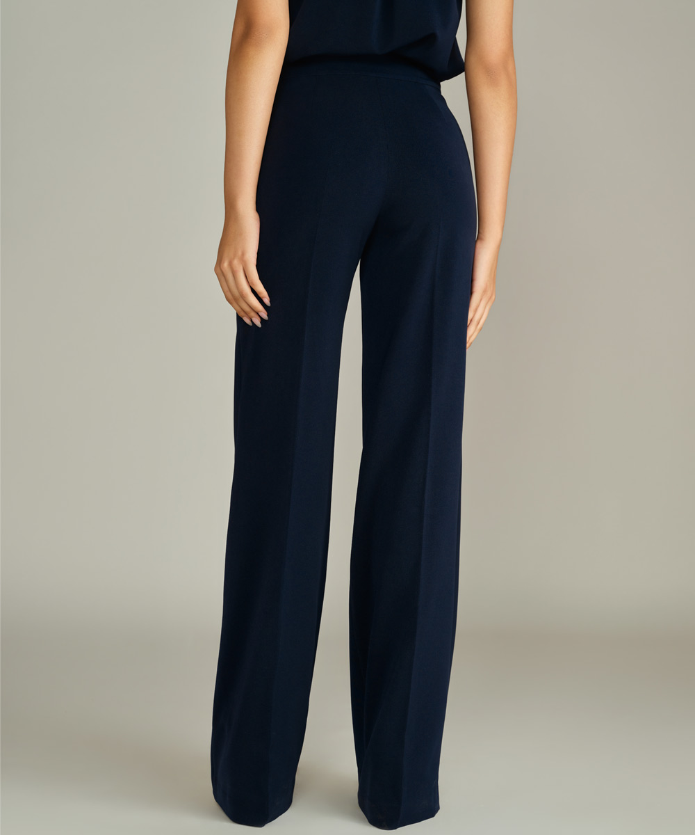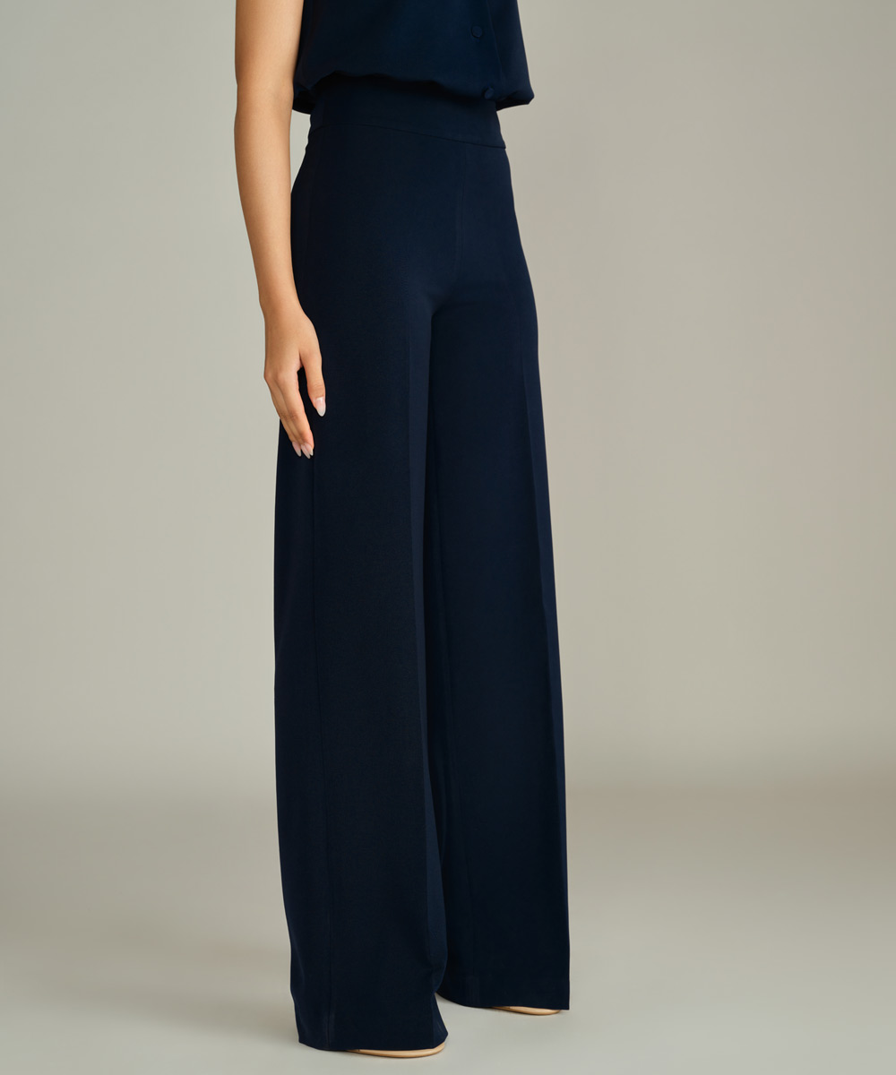 Navy Blue Stretch Suiting Wide-Leg Trousers