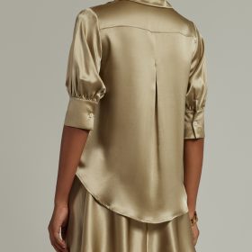 - Elbow length sleeves with pleats at the cuff