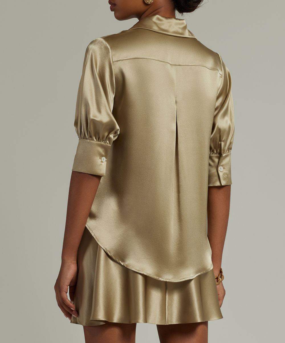Olive Silk Short-Sleeved Shirt