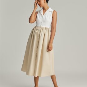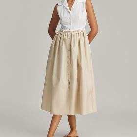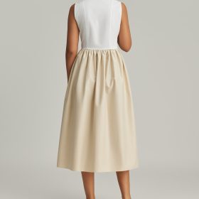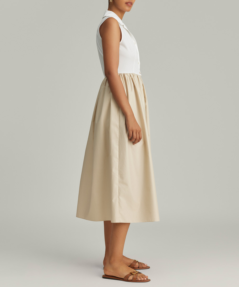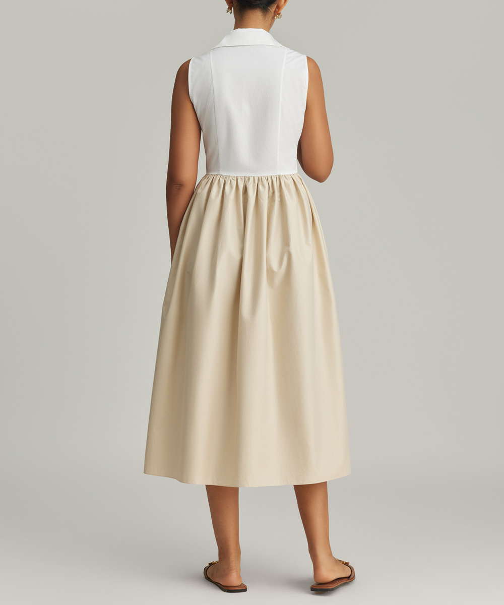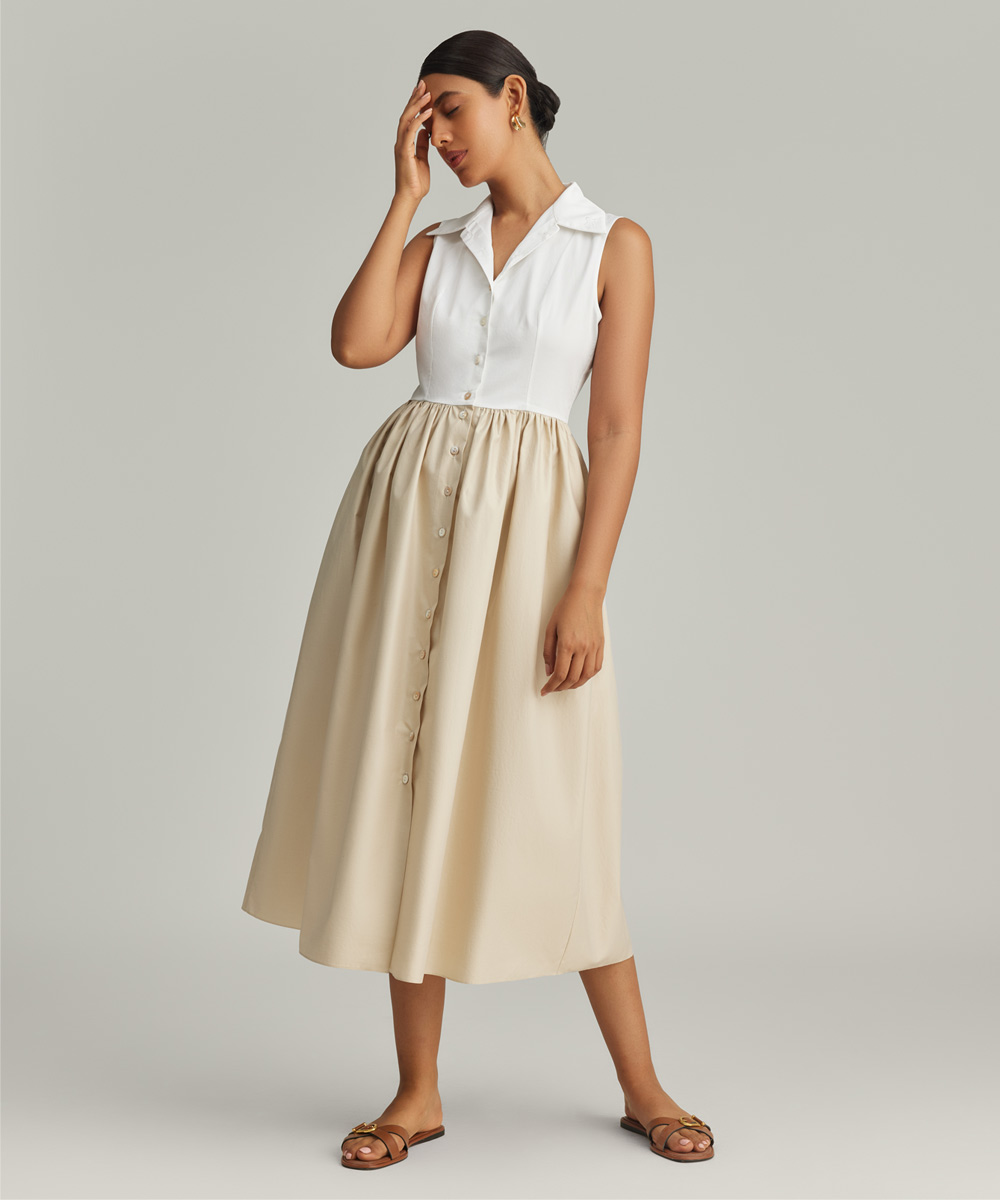White and Fawn Egyptian Cotton Long Tennis Dress