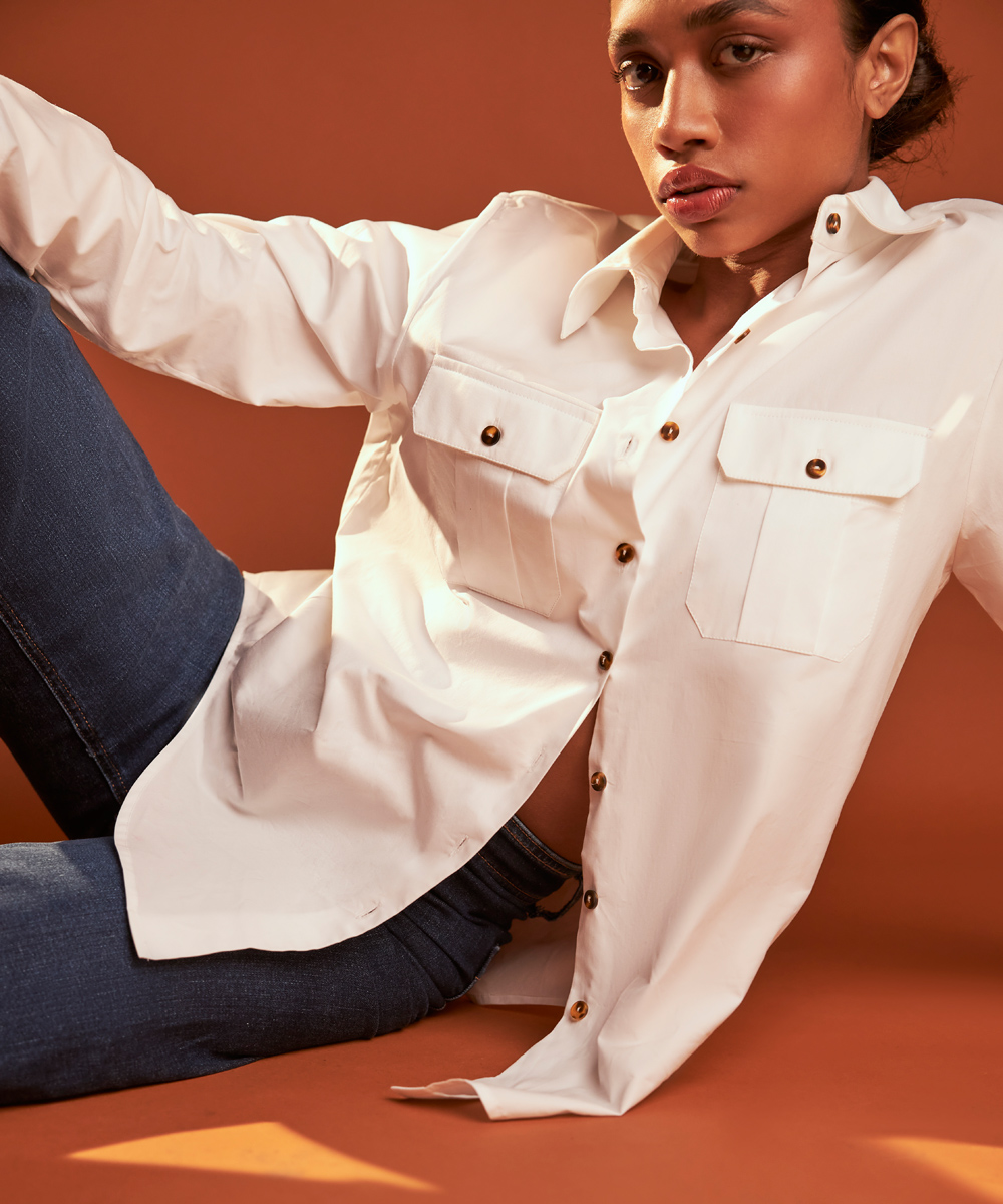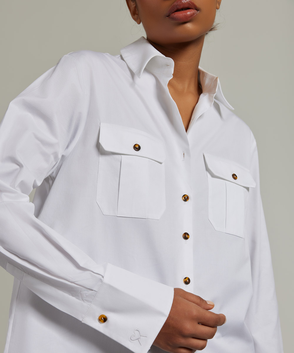 White Egyptian Cotton Oversized Long-Sleeved Shirt